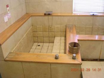果真 湯屋中 大池旁邊的木桶都有黑黑的痕跡